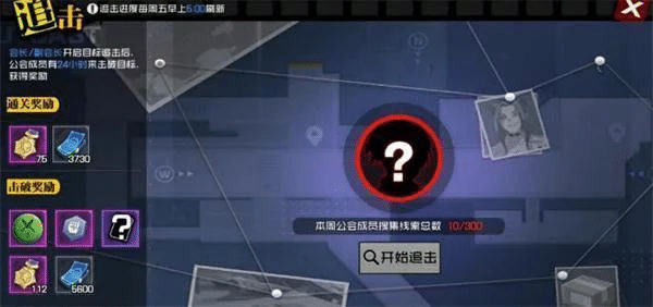搜集线索达到一定数量后,我们即可开启追击副本的挑战,副本开启后我们有24小时的时间将其击破,成功击败后即可公会贡献、画像、铭文、炁灵等奖励。