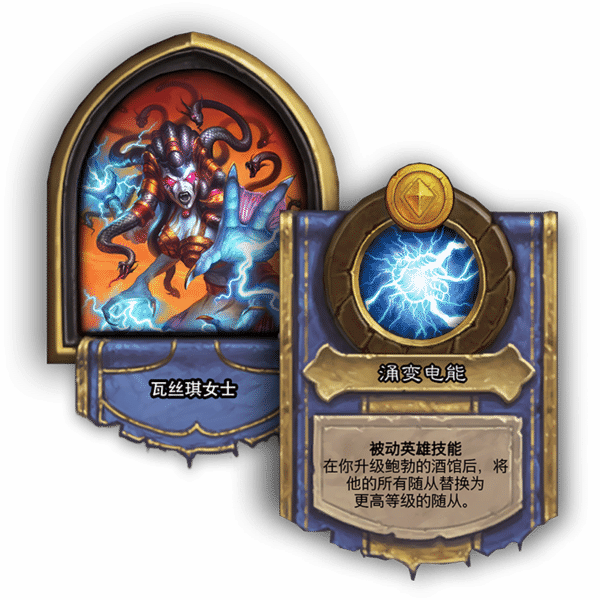 涌变电能 [被动]:在你升级鲍勃的酒馆后,将他的所有随从替换为更高等级的随从。