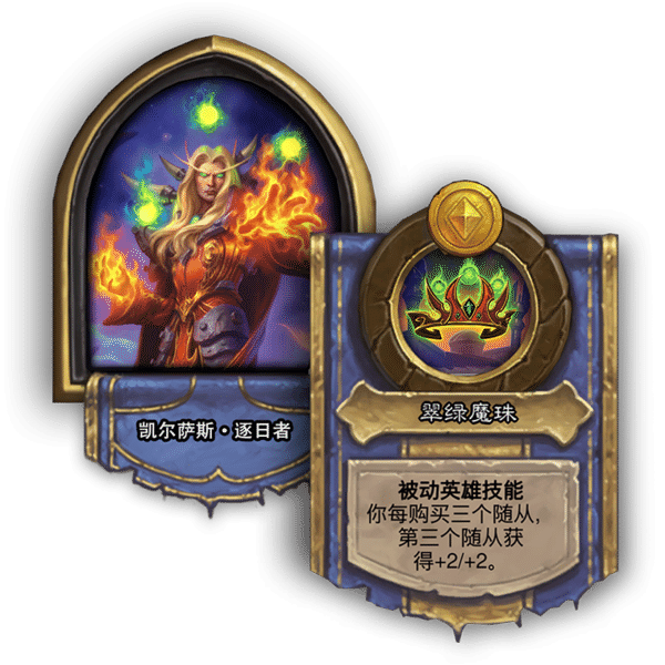 翠绿魔珠 [被动]: 你每购买三个随从,第三个随从获得+2/+2。